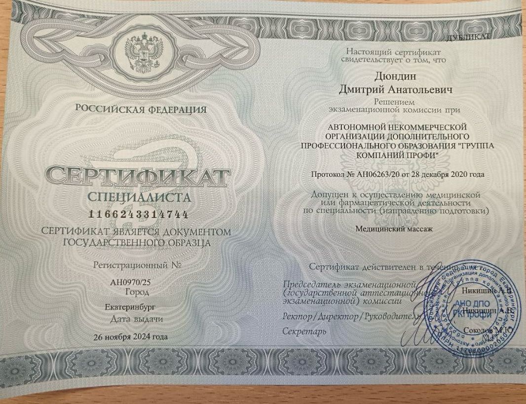 Имею обширный опыт в проведении медицинских массажных процедур для лечения болей в спине, суставах, а также для реабилитации после травм и операций.